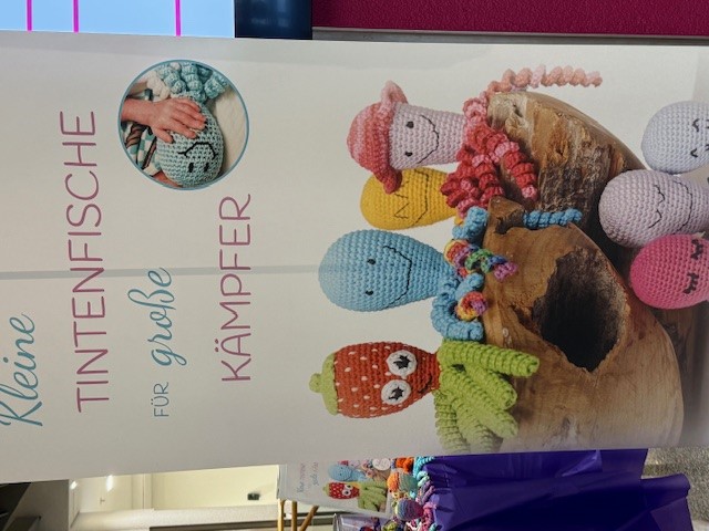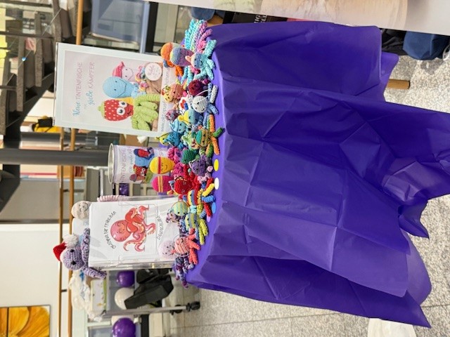 Unsere wunderbare Botschafterin Christiane (im Bild rechts) war gemeinsam mit einer lieben Häkelbiene (Eva-Maria – links im Bild) in ihrem Krankenhaus unterwegs und hat dort mit ganz viel Herz einen Stand betreut – natürlich rund um unsere kleinen Oktopus-Helden.