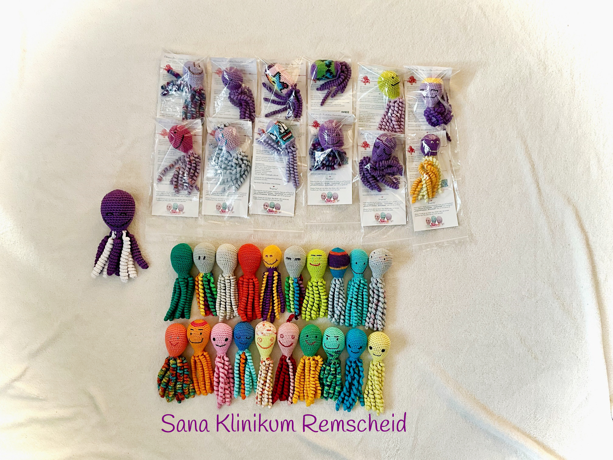 Somit haben wir in diesem Jahr bereits über 3.000 Frühchen-Oktis verteilt. Was für eine Zahl. Ein herzliches Dankeschön an alle Häkelbienen, Unterstützer und Spender, die dies möglich machen. Gemeinsam schenken wir Nähe, Halt und ein kleines Stück Trost.
