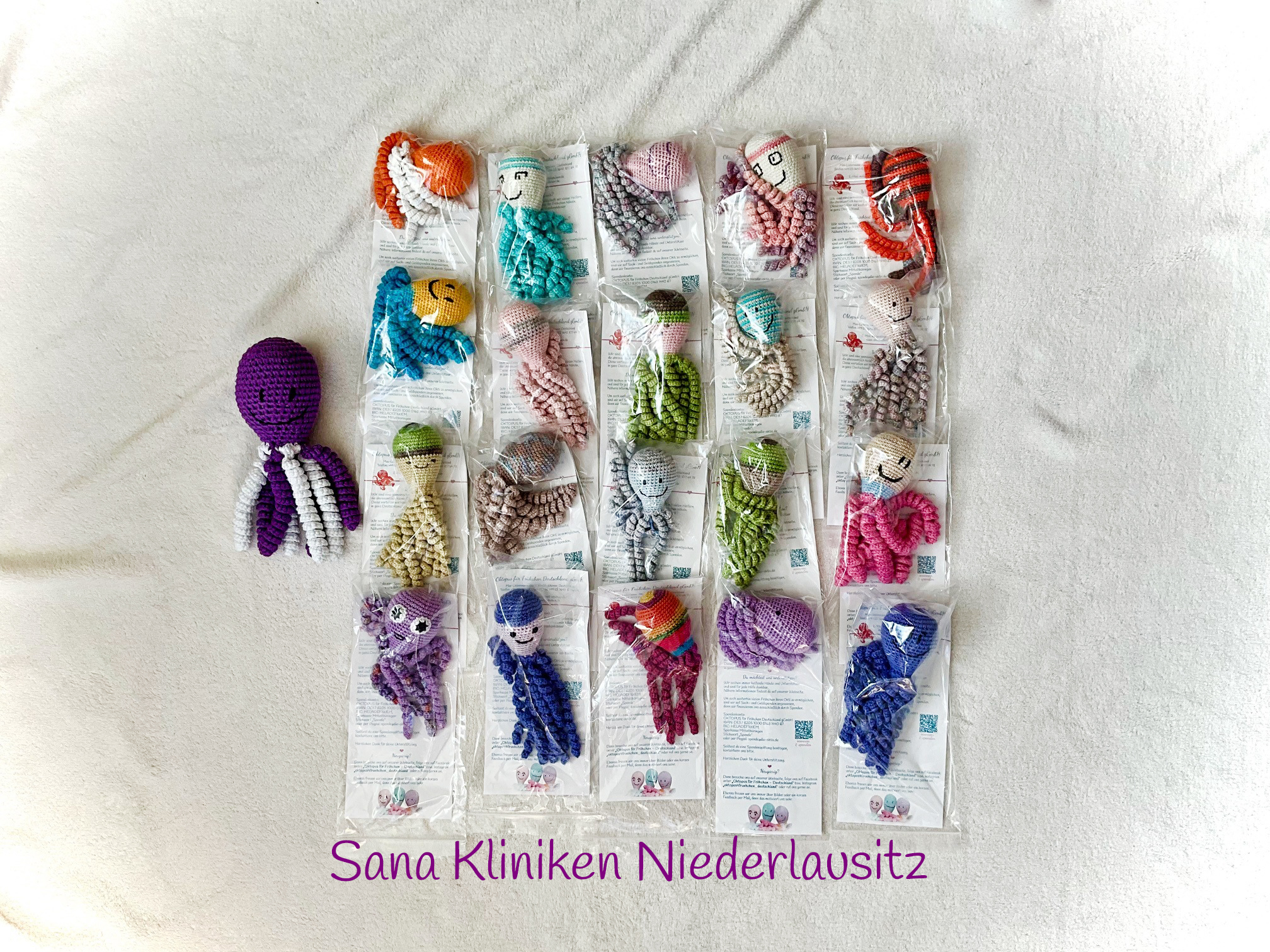 In den letzten Wochen haben wieder viele liebevoll gehäkelte Oktopusse unser Lager verlassen und sind auf dem Weg zu verschiedenen Kliniken in ganz Deutschland.