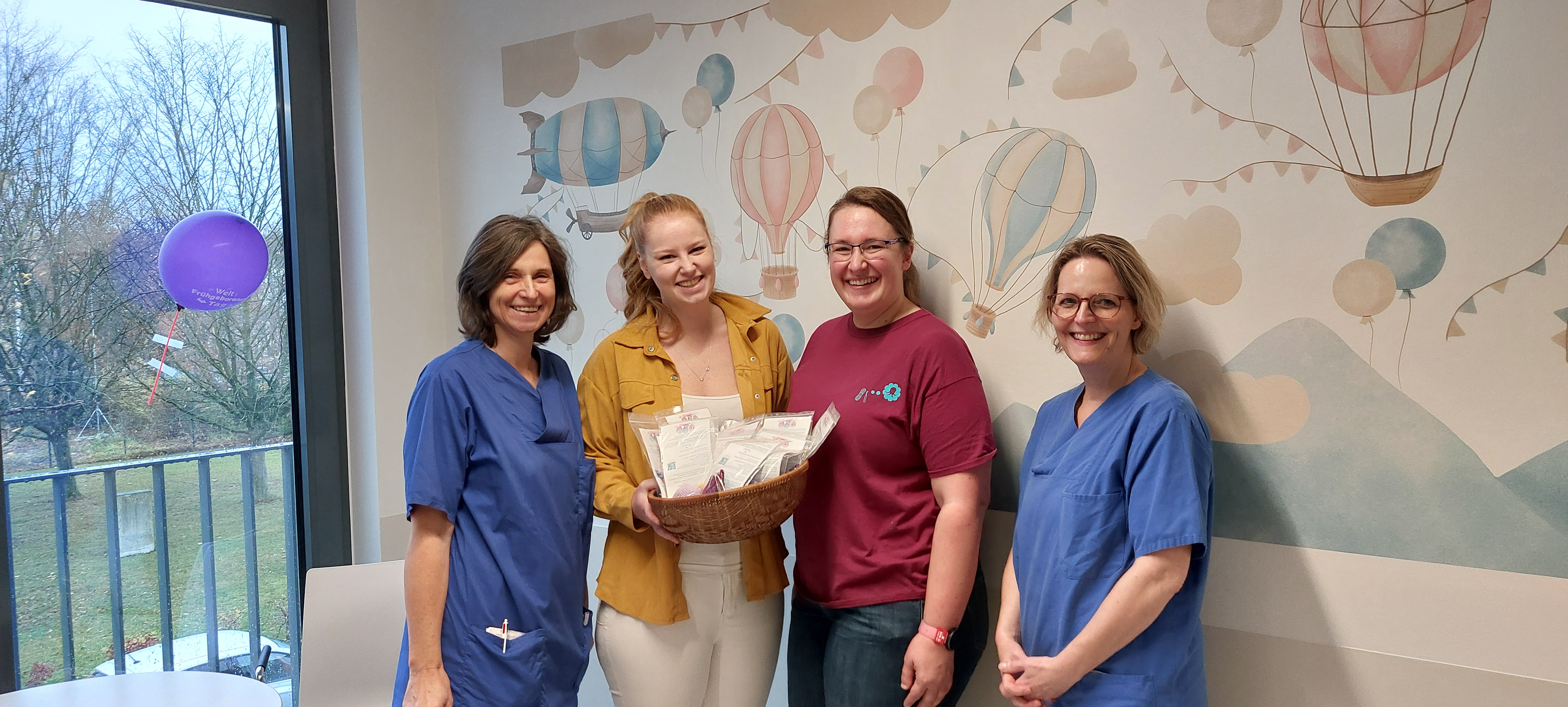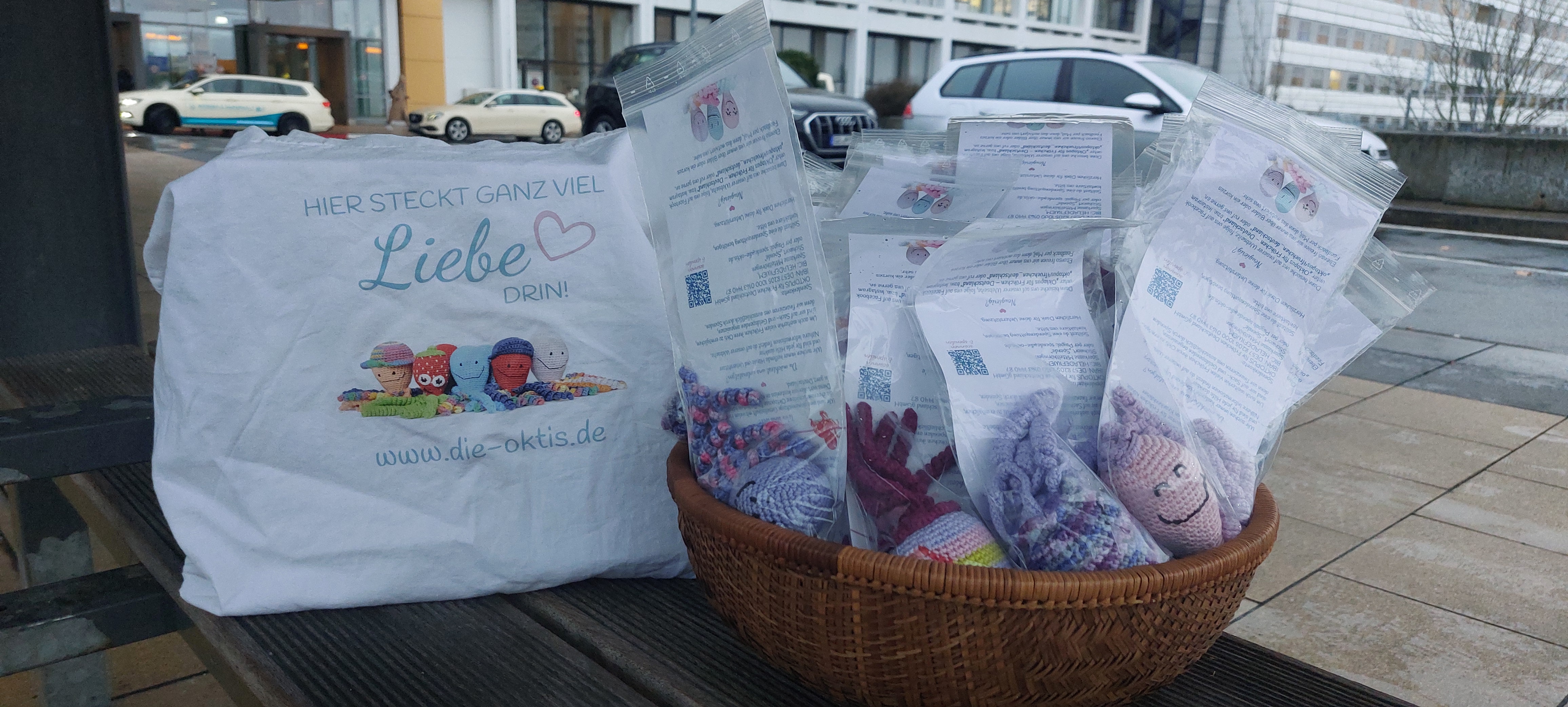 Im Gepäck hatte ich 30 fröhliche Oktis, die, passend zum Weltfrühgeborenentag, in lila Farben gekleidet waren.